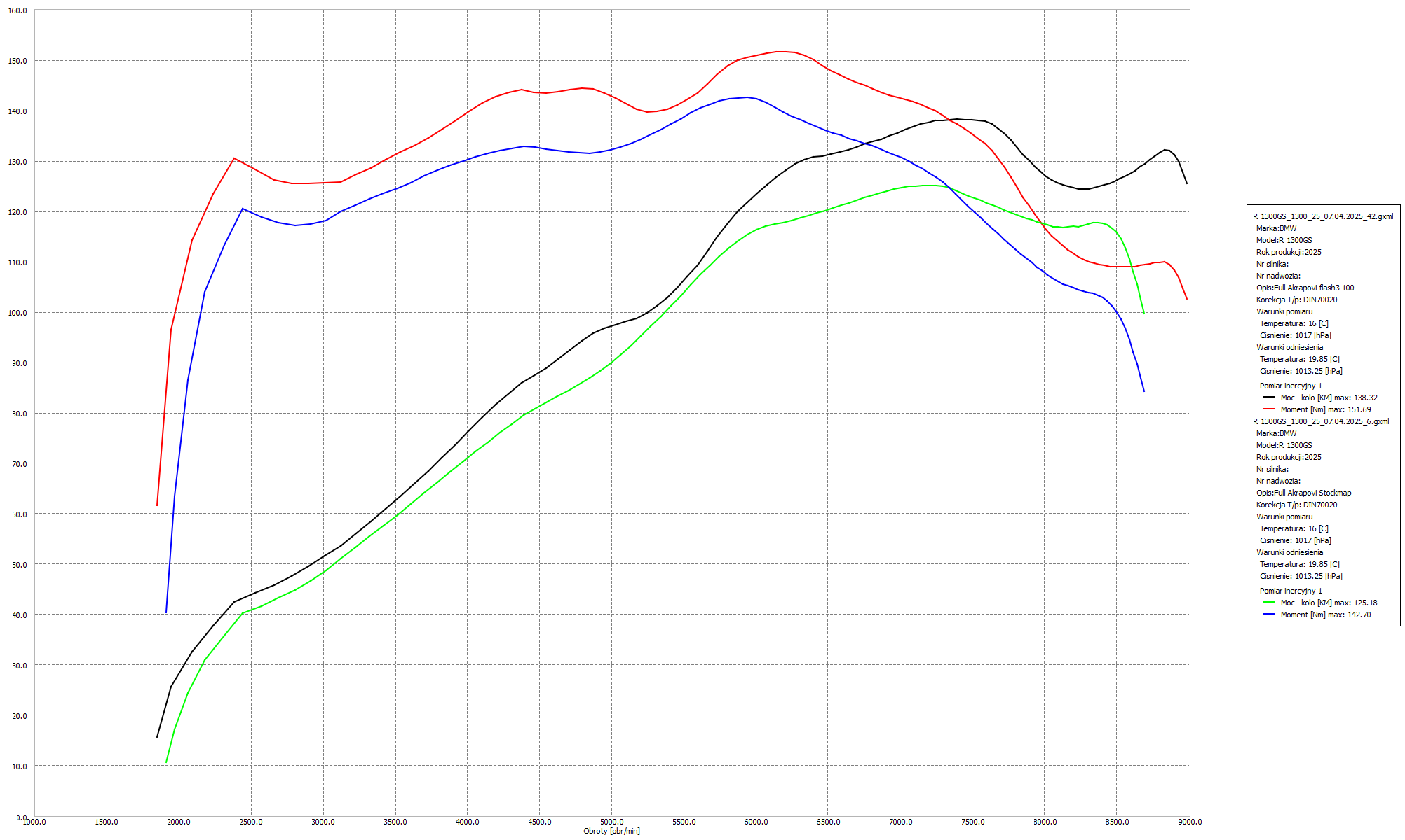 Podczas pracy nad R 1300 GS skupiliśmy się na usunięciu zbędnych ograniczeń i przywróceniu silnikowi naturalnego oddechu. Zaczęliśmy od przejęcia kontroli nad mapami zapłonu i paliwa – co pozwoliło nam zoptymalizować przebieg momentu w całym zakresie obrotów. Usunęliśmy fabryczne opóźnienia na przepustnicy, wyeliminowaliśmy „zamulenie” w dolnym zakresie oraz zredukowaliśmy nadmierną ingerencję sondy lambda. Poprawiliśmy też reakcję na manetkę, dzięki czemu silnik lepiej reaguje na każde otwarcie gazu – niezależnie od trybu jazdy.