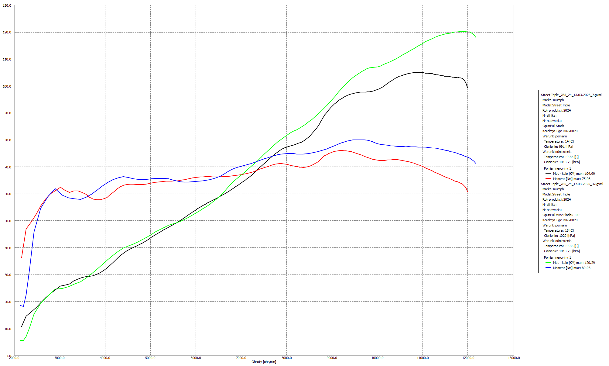 Triumph Street Triple 765 to prawdziwy wzór w klasie nakedów, łączący agresję, precyzję i technologiczną finezję. Model 2024 czerpie pełnymi garściami z doświadczeń Moto2, oferując trzycylindrowy silnik, który uwielbia wysokie obroty i dostarcza niesamowitych emocji. Kompaktowa sylwetka, doskonałe zawieszenie i zaawansowana elektronika czynią z niego idealnego partnera zarówno na miasto, jak i na tor. Niestety – zgodność z normą Euro5+ ograniczyła jego potencjał, wpływając na reakcję na gaz i pełne wykorzystanie mocy. Ale nie zostawiliśmy tego tak!